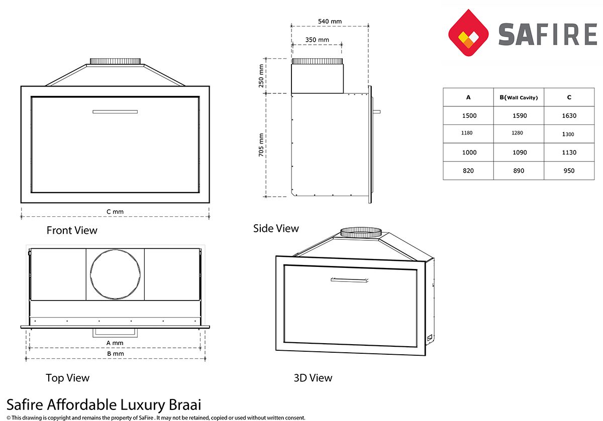 Unveiling the SAfire Affordable Luxury Wood Braai Insert, a masterful blend of budget-friendly luxury and optimal functionality. Crafted from premium Stainless Steel, this braai insert is adorned with features akin to our Flagship models. Its structure undergoes a meticulous sandblasting and is then coated with ultra-high heat paint, effectively concealing the typical discolouration seen in heated Stainless Steel. Swiftly prepare for your braai sessions with the integrated ember maker, promising ready-to-use embers in a mere 30 minutes. Revel in the perpetual ember flow, ensuring a lasting fire throughout your braai. Night-time grilling is simplified with the in-built light, and the potjie enthusiasts aren’t forgotten with a dedicated potjie hook. Maintenance is a breeze thanks to the lightweight ash drawer. And for those aiming to enhance their setup, consider the optional 350 dia flue and Turbo Cowl. Your perfect grilling partner, the SAfire Wood Braai Insert promises durability, convenience, and style without breaking the bank.