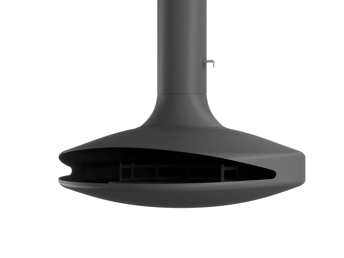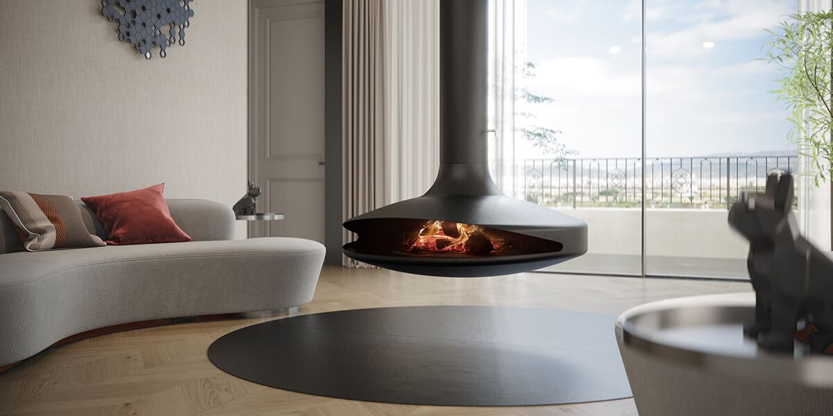 As a captivating centerpiece, this suspended fireplace features a bold 1100mm diameter and exceptional craftsmanship. With a 360° rotation and an impressive 10kW heat output, it reimagines the comfort of an open fireplace for contemporary living, blending functional art with relaxation.